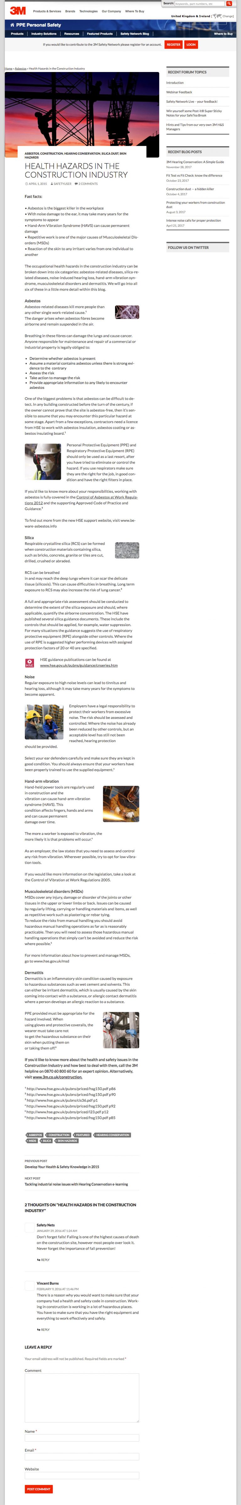 Richard has written a wide selection of blogs for the 3M Personal Safety Division, covering everything from the dangers of welding fume to recognising and addressing skin hazards in industry.